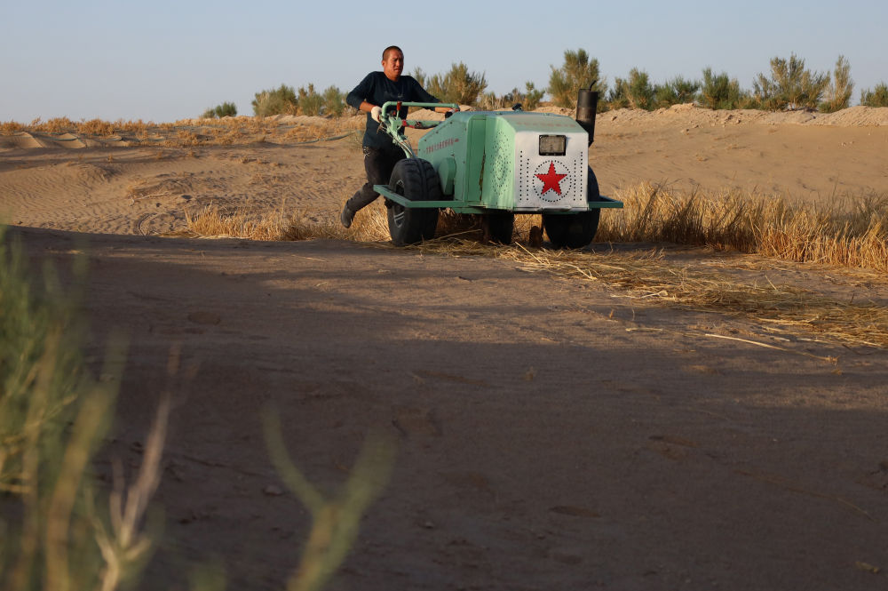 目前,手扶式沙障机已开始广泛应用,作业效率是传统人工作业的4至6倍,亩均治沙成本可降低250元左右。