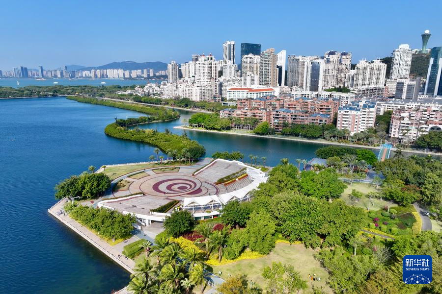 这是1月24日拍摄的厦门筼筜湖白鹭洲公园及周边城市景观(无人机照片)。新华社记者 姜克红 摄