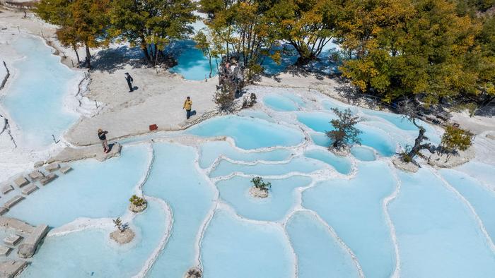 2024年3月10日在香格里拉市三坝乡拍摄的白水台一景(无人机照片)。新华社记者 胡超 摄