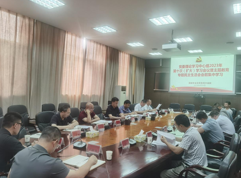 8月23日,国家林草局中南院召开党委理论学习中心组2023年第十次(扩大)学习会议暨主题教育专题民主生活会会前集中学习。党委书记、院长周学武主持会议并作总结讲话,院领导班子成员、党委委员和各支部书记参加学习。