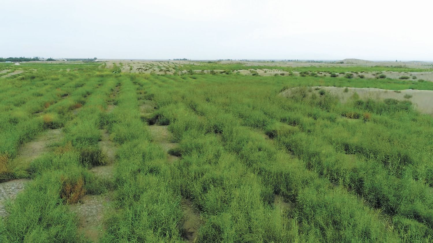 在新疆阿克苏地区艾西曼区域生态修复和荒漠化治理工程现场,记者顺着阿瓦提县林草局副局长蒋丽丽手指的方向放眼望去,昔日裸露黄沙已被沙枣、梭梭、胡杨等植物覆盖。随着春日的到来,随风摇曳的梭梭枝条上已冒出嫩绿的新芽,新的生命正在孕育,自然更新的植物群落正在构建。