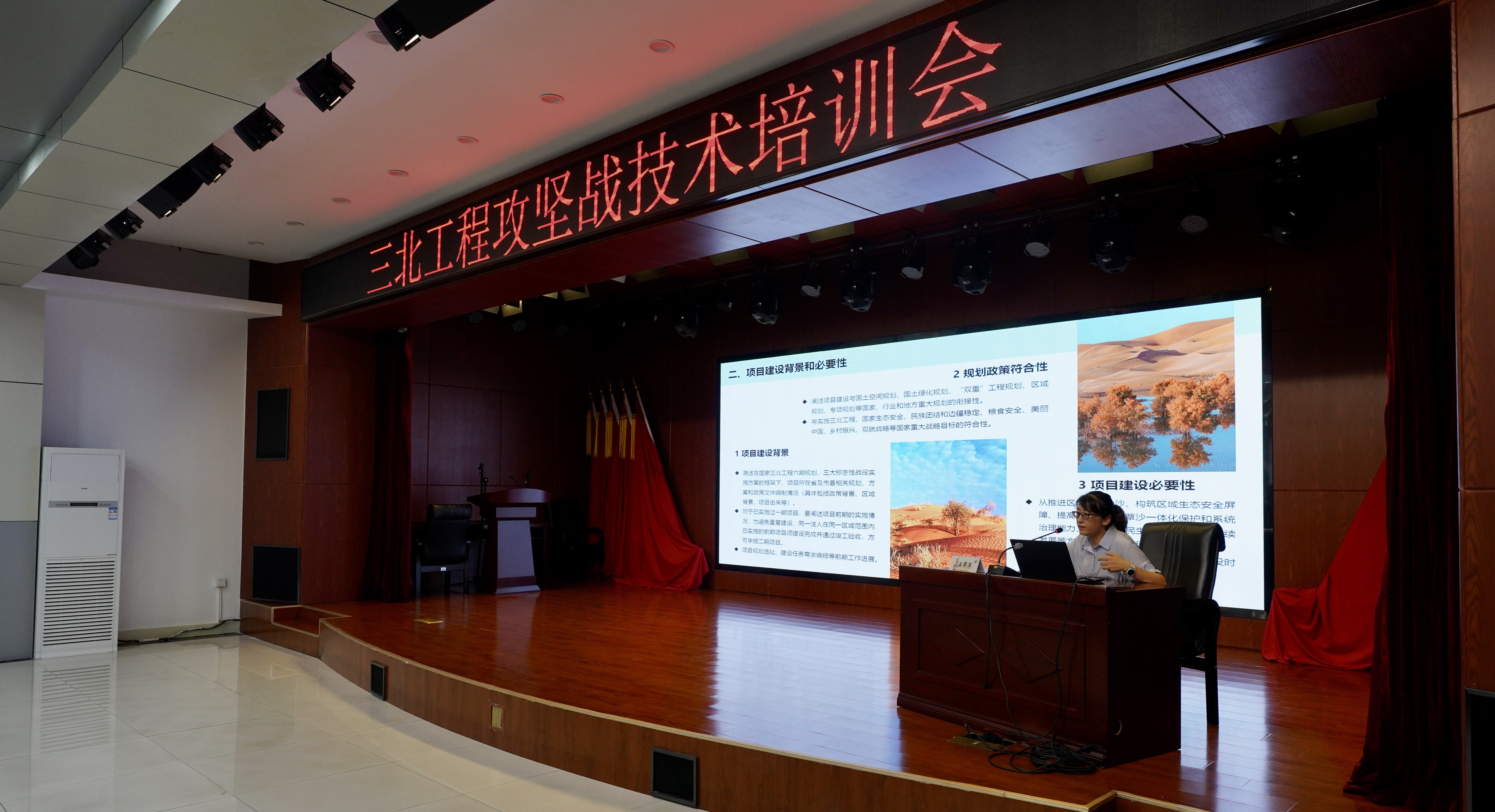 9月28日,院长李谭宝主持召开全院“三北”工程攻坚战技术培训会。他强调,要深刻领会习近平总书记主持召开加强荒漠化综合防治和推进“三北”等重点生态工程建设座谈会的重大意义,全面准确把握“三北”六期工程相关政策要求,加强技术储备,加快项目对接,为筑牢西北生态安全屏障提供坚实有力支撑。在院领导及职工参加会议。
