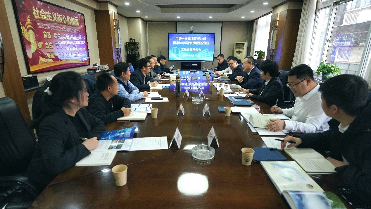 1月17日,中铁一局集团有限公司副总经济师、生态资源经营推进指挥部指挥长刘建卫,副指挥长薛祺,中铁一局集团有限公司生态资源建设公司党总支书记吴春明、总经理邵海清等一行来我院开展工作交流。我院副院长王孝康,办公室、生产技术管理处(总工办)、荒漠处、碳汇处、国土绿化处等相关处室人员参加了会议。