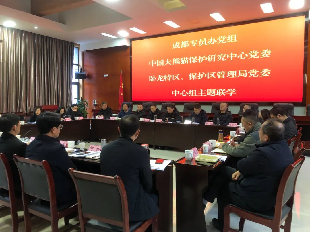 为巩固扩大学习贯彻习近平新时代中国特色社会主义思想主题教育成果,12月5日,国家林草局驻成都专员办党组、中国大熊猫保护研究中心党委、四川汶川卧龙特区(保护区管理局)党委在卧龙开展理论学习中心组主题联学,围绕持续深入学习贯彻落实习近平生态文明思想,努力提升大熊猫保护研究水平主题开展集中学习研讨。成都专员办党组书记、卧龙特区(保护区管理局)党委书记向可文主持会议,四川省直机关工委统战群工部四级调研员张富琳列席,成都专员办、熊猫中心、卧龙特区(保护区管理局)理论学习中心组成员参加了学习。