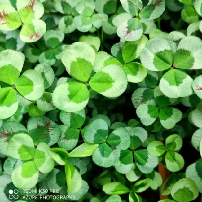 白花三叶草又名白车轴草,属多年生草本植物,茎匍匐蔓生,掌状三出复叶为常态。但在自然情况下,白车轴草偶尔会长出四片小叶。这是因为叶芽在分化的过程中,叶片发育相关基因出现异常,多产生了一个小叶原基。在激素、温度等因素的影响下,产生四叶草,甚至会出现多于四叶的五叶情况。人们常把第一片叶子代表祈求、第二片叶子代表希望、第三片叶子代表爱情、第四片叶子代表幸福,所以四片叶子的车轴草又称为“幸运草”。