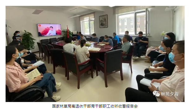 国家林草局离退休干部局始终把组织收听收看全国离退休干部网上专题报告会作为一项重要工作来抓,高度重视、广泛动员、精心组织,特别是将收听收看本场报告会作为开展主题教育的重要内容,抓实抓细抓好,确保做到深入人心、激发共鸣、取得实效。为此,及时通过印发通知和党建微信群向局21个老干部党支部和各单位提前发布收听收看网上专题报告会通知、报告会预报和播放链接,并要求全体老干部党支部和机关党支部通过线上线下等方式组织好学习和讨论。