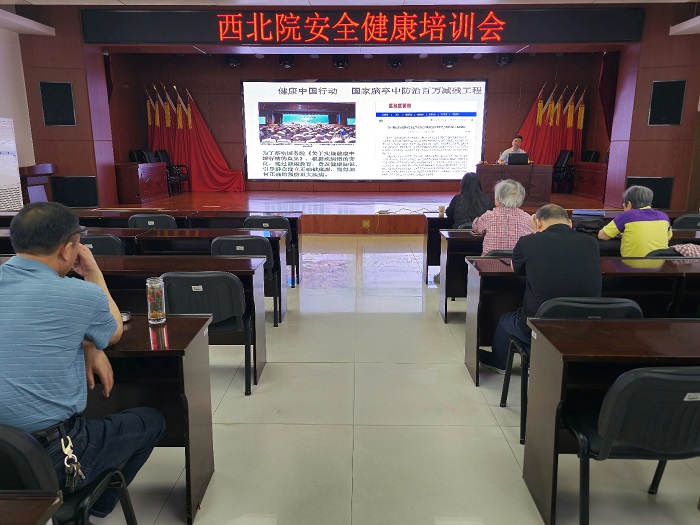 6月9日,为进一步加强安全健康教育,关怀职工身心健康,提升全员安全防范意识,西北院特邀安全健康教育网陕西宣传科主任、健康管理师丁银涛开展安全健康专题培训,在院职工及退休老同志参加。