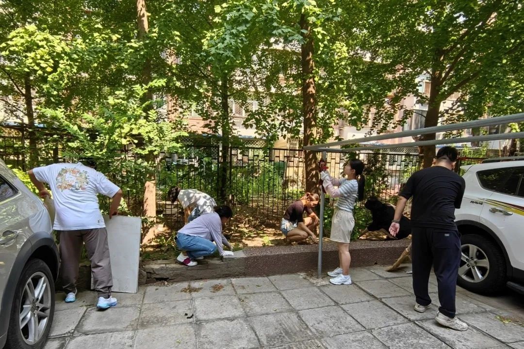 活动当天,来自发展院青年志愿者服务队的15名热心青年与左家庄街道办事处的工作人员齐聚三源里北小街3号楼社区。他们带着扫帚、垃圾袋、铲刀等清洁工具,分组分区开展卫生大扫除,通过清扫楼道、走廊和公共区域,清除乱贴乱画的小广告,整理花坛清理杂草,让社区环境焕然一新。