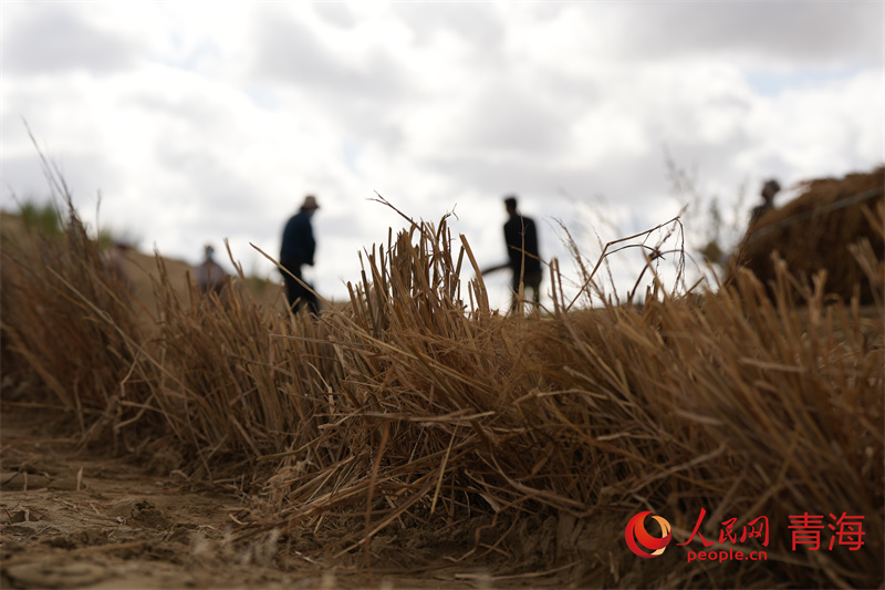 制作草方格。人民网记者 甘海琼摄